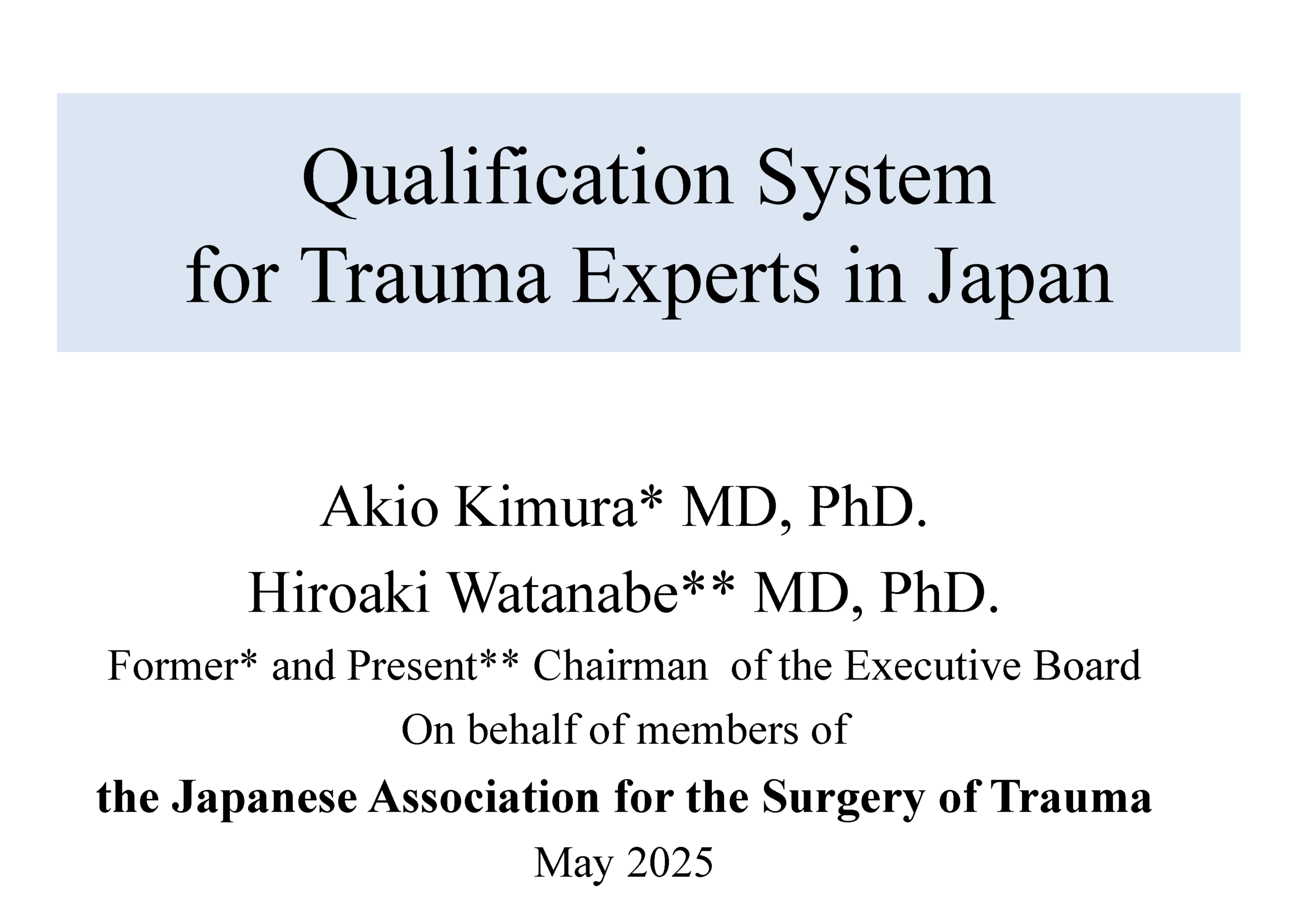 日本における外傷専門家の資格制度英語版を掲載いたしました
