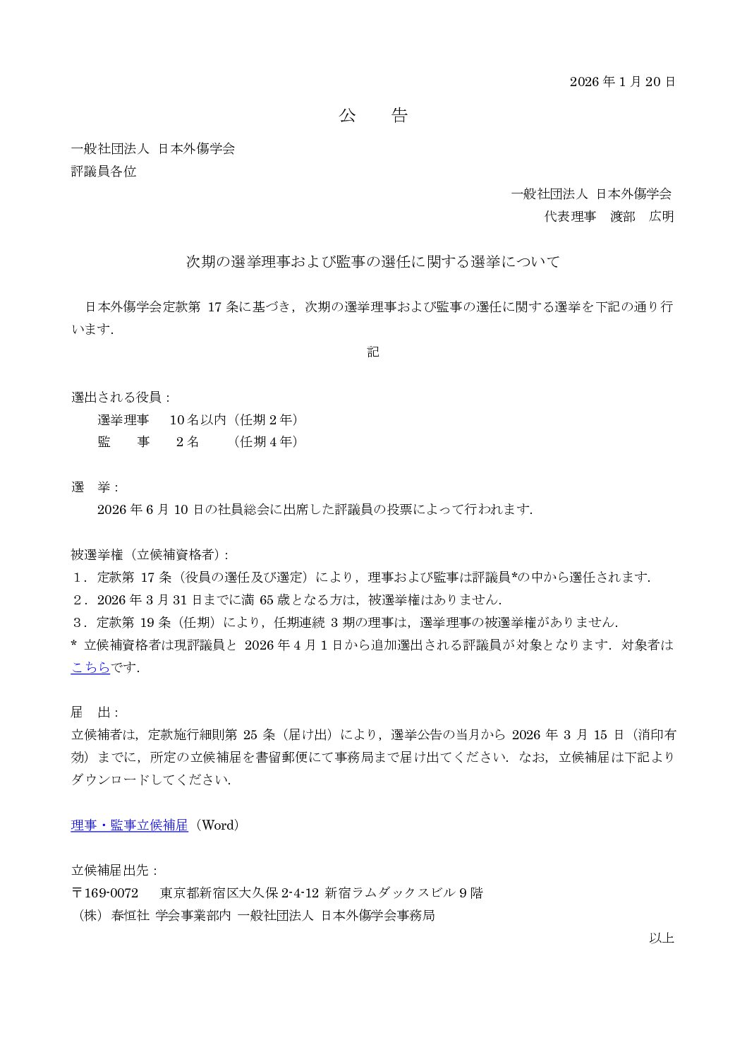【公示】次期の選挙理事および監事の選任に関する選挙について